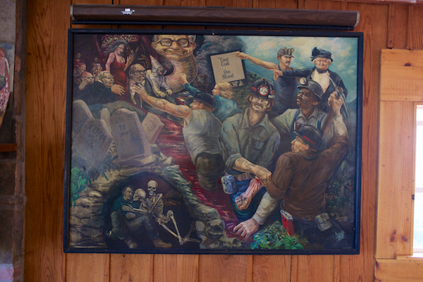 8. Andy W. Blue’s painting at the Appalachian South Folklife Center depicting the tragedies of coal mining and the struggles of labor organizing. Pipestem, West Virginia.