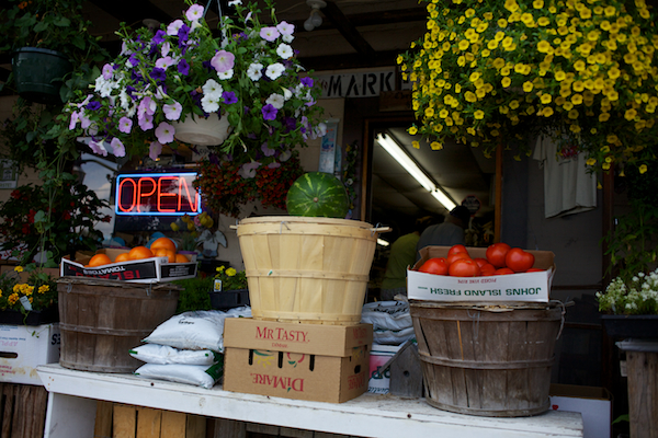 6. Flowers and fresh produce at The Apple Barrel market. Lerona, West Virginia.