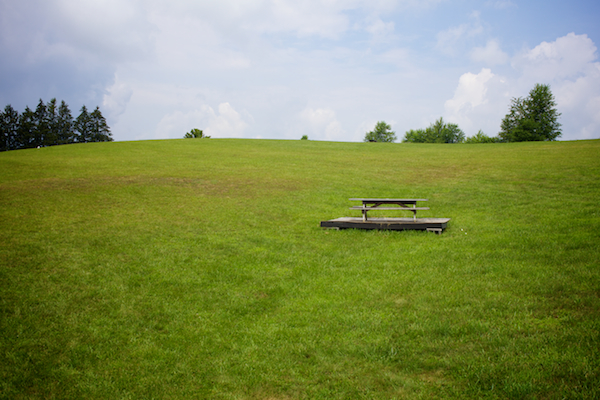 7. Picnic table on the hill at the Appalachian South Folklife Center. Pipestem, West Virginia.